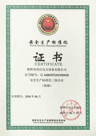 鐵嶺市世紀(jì)電力設(shè)備有限公司是集科研開發(fā)、生產(chǎn)制造、用戶服務(wù)于一體的國家高新技術(shù)企業(yè),始建于1999年,位于鐵嶺經(jīng)濟開發(fā)區(qū),占地面積5萬余平方米,建筑面積2萬余平方米。主要從事國家電網(wǎng)配套戶外高低壓隔離開關(guān)、電力電纜、變壓器成套裝置、高低壓開關(guān)柜、箱式變電站、絕緣子等產(chǎn)品的研發(fā)、生產(chǎn)和銷售。公司現(xiàn)有國家發(fā)明專利6項、實用新型專利9項,公司通過了ISO9001國際質(zhì)量管理體系認(rèn)證、ISO14001環(huán)境管理體系認(rèn)證和ISO 45001職業(yè)健康安全體系認(rèn)證。